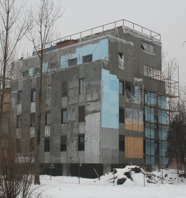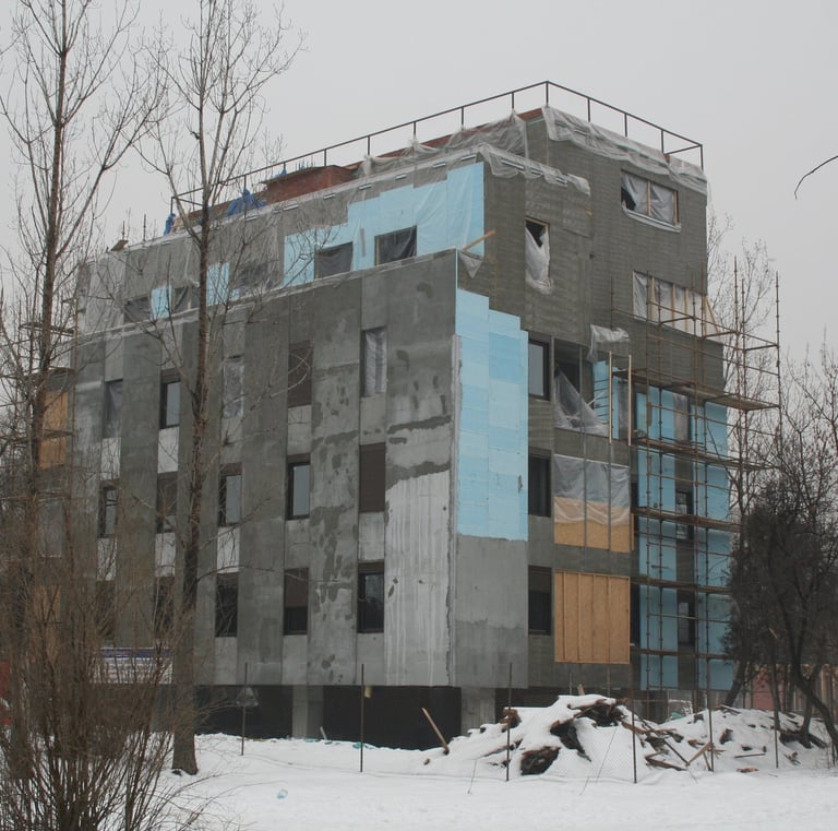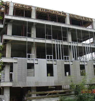 Închiderea exterioară este realizată pe o structură metalică solidă, din bare de 50x50x5mm. Sistemul de izolare este complex și performant: pe exterior se utilizează tencuială urmată de 5cm de polistiren extrudat și placocem. La interior, izolația termică și fonică este asigurată de un strat de 5cm de vată minerală, un strat suplimentar de 5cm de vată de sticlă și două plăci de Rigips.