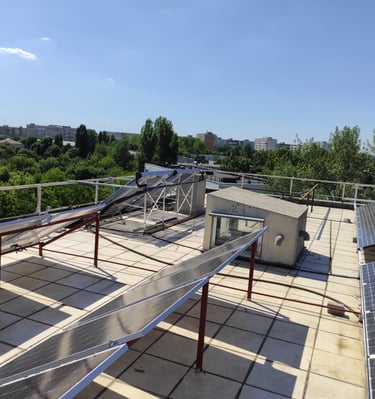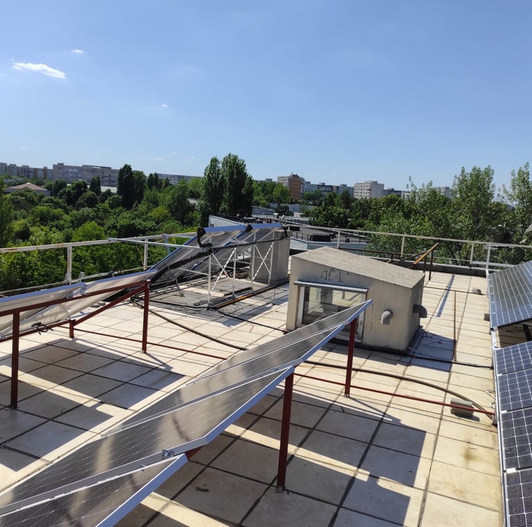 Proprietatea se remarcă prin soluțiile sale de energie regenerabilă. Un total de 8.3 KWp de panouri fotovoltaice sunt instalate pe terasa superioară. Sistemul combină 4.8 KWp cu injecție în rețea cu 3.5 KWp conectate la un invertor hibrid și baterii Pylontech cu o capacitate totală de 10 KWh. Ambele apartamente sunt pregătite (cu invertoare și contoare inteligente montate) pentru injecția în rețea, deși în prezent este folosit doar sistemul de la apt. 8. Pe timp de vară, sistemele fotovoltaice acoperă circa 95% din puterea consumată de aerul condiționat, existând totodată spațiu rămas pe terasa superioară pentru instalarea suplimentară a încă 5 KWp.