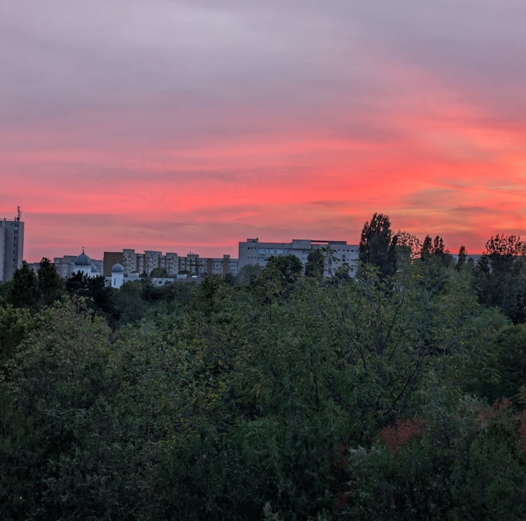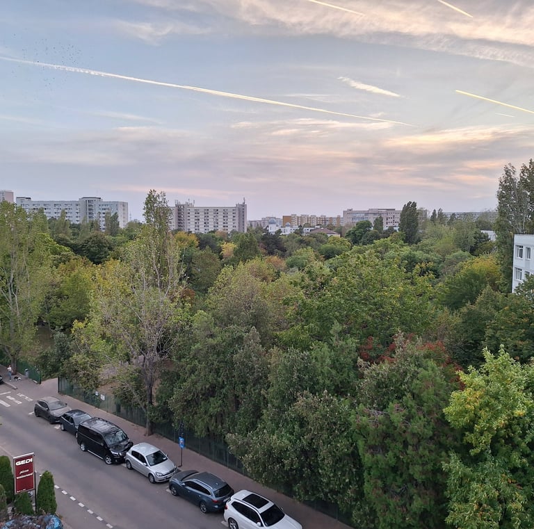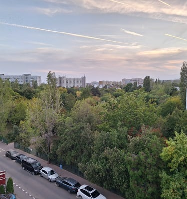 Imobilul beneficiază de o orientare excelentă, care maximizează lumina naturală pe tot parcursul zilei. Vederile sunt neobturate și se extind pe trei puncte cardinale: Sud, Est și Vest, asigurând un spectacol vizual constant de la răsărit până la apus.